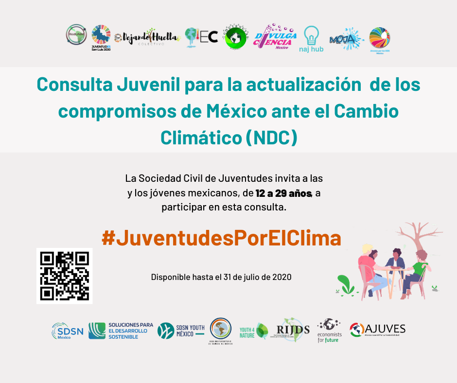La Sociedad Civil Mexicana de Juventudes invita a las y los jóvenes, entre 12 y 29 años, a participar en la Consulta Juvenil para la actualización de los compromisos de México ante el Cambio Climático.