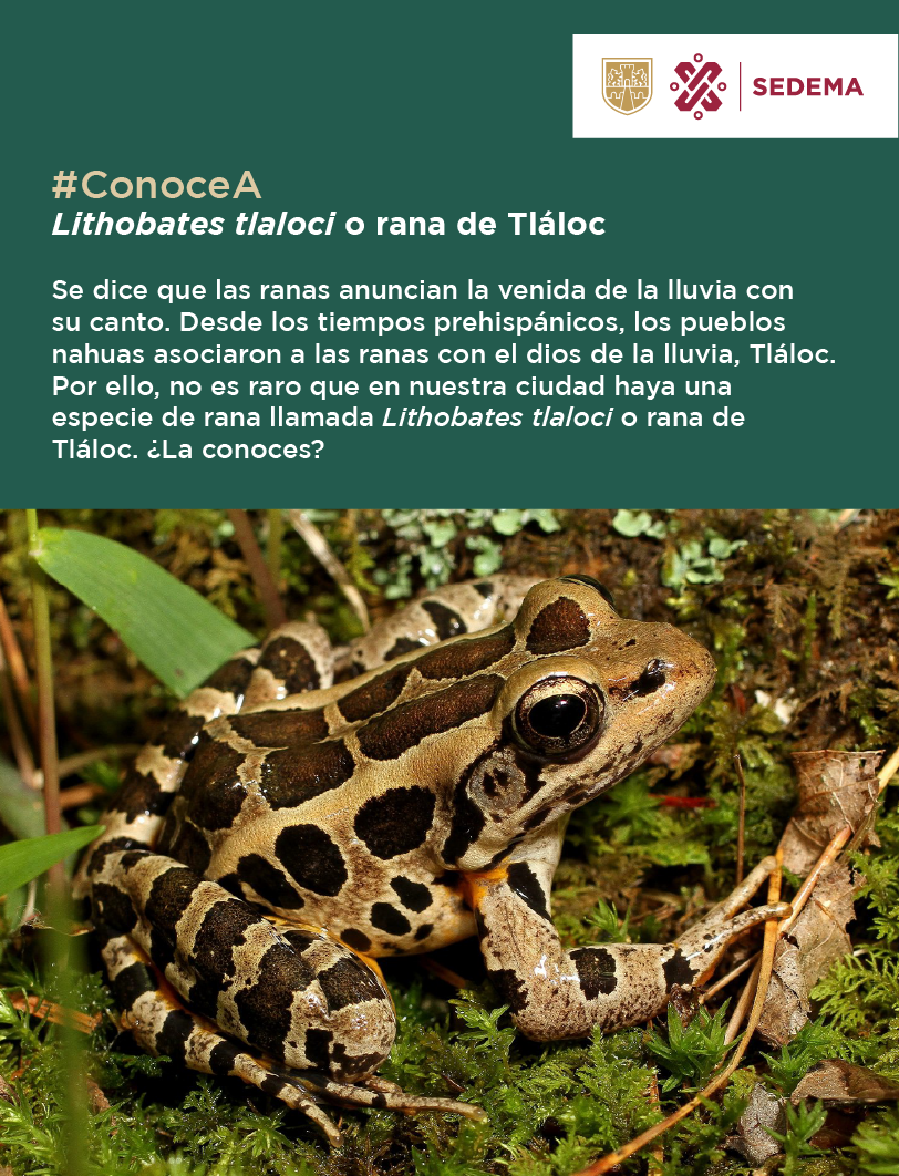 Se dice que las ranas anuncian la venida de la lluvia con su canto. Desde los tiempos prehispánicos, los pueblos nahuas asociaron a las ranas con el dios de la lluvia, Tláloc. Por ello, no es raro que en nuestra ciudad haya una especie de rana llamada Lithobates tlaloci o rana de Tláloc. ¿La conoces?